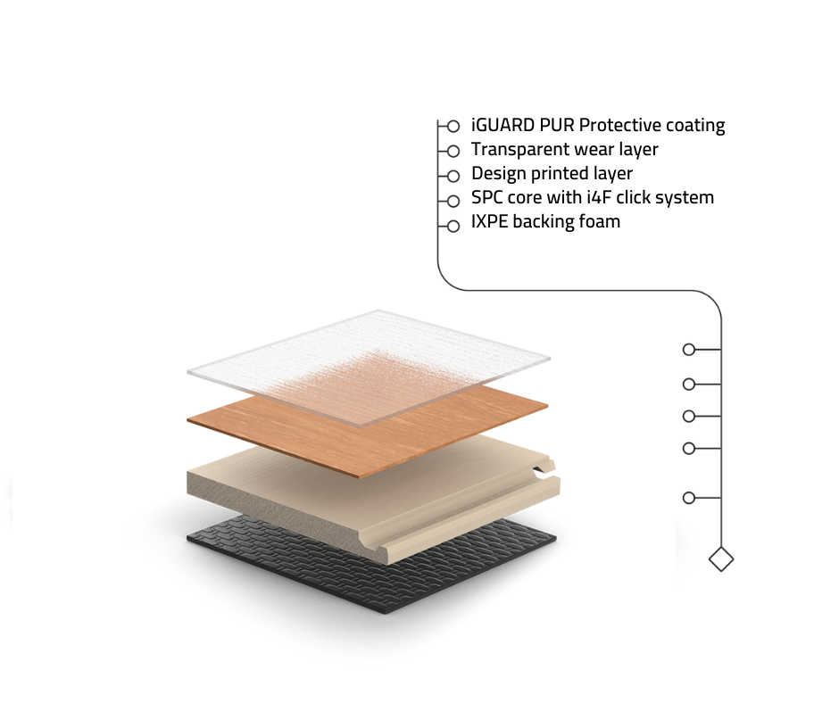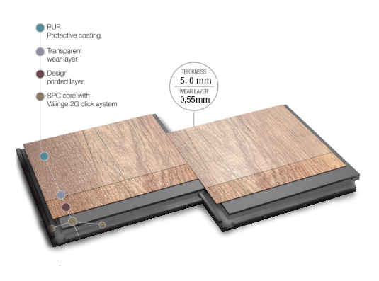 Avantajul major al pardoselii Domino SPC constă în nucleul său rigid (Stone Polymer Composite), care o face mult mai durabilă și stabilă decât alte pardoseli convenționale cu sistem click & lock. Aspectul său vizual impresionant și caracterul impermeabil o fac potrivită pentru montaj în toate încăperile casei și este ideală și pentru camere cu încălzire în pardoseală. Avantajul major al pardoselii Domino SPC constă în nucleul său rigid (Stone Polymer Composite), care o face mult mai durabilă și stabilă decât alte pardoseli convenționale cu sistem click & lock. Aspectul său vizual impresionant și caracterul impermeabil o fac potrivită pentru montaj în toate încăperile casei și este ideală și pentru camere cu încălzire în pardoseală. Fabricată din materiale ecologice, cu spate din spumă, nu necesită un substrat perfect plan, iar instalarea este simplă datorită sistemului click & lock. Pardoseala este realizată din ingrediente 100% reciclate, reducând amprenta ecologică.