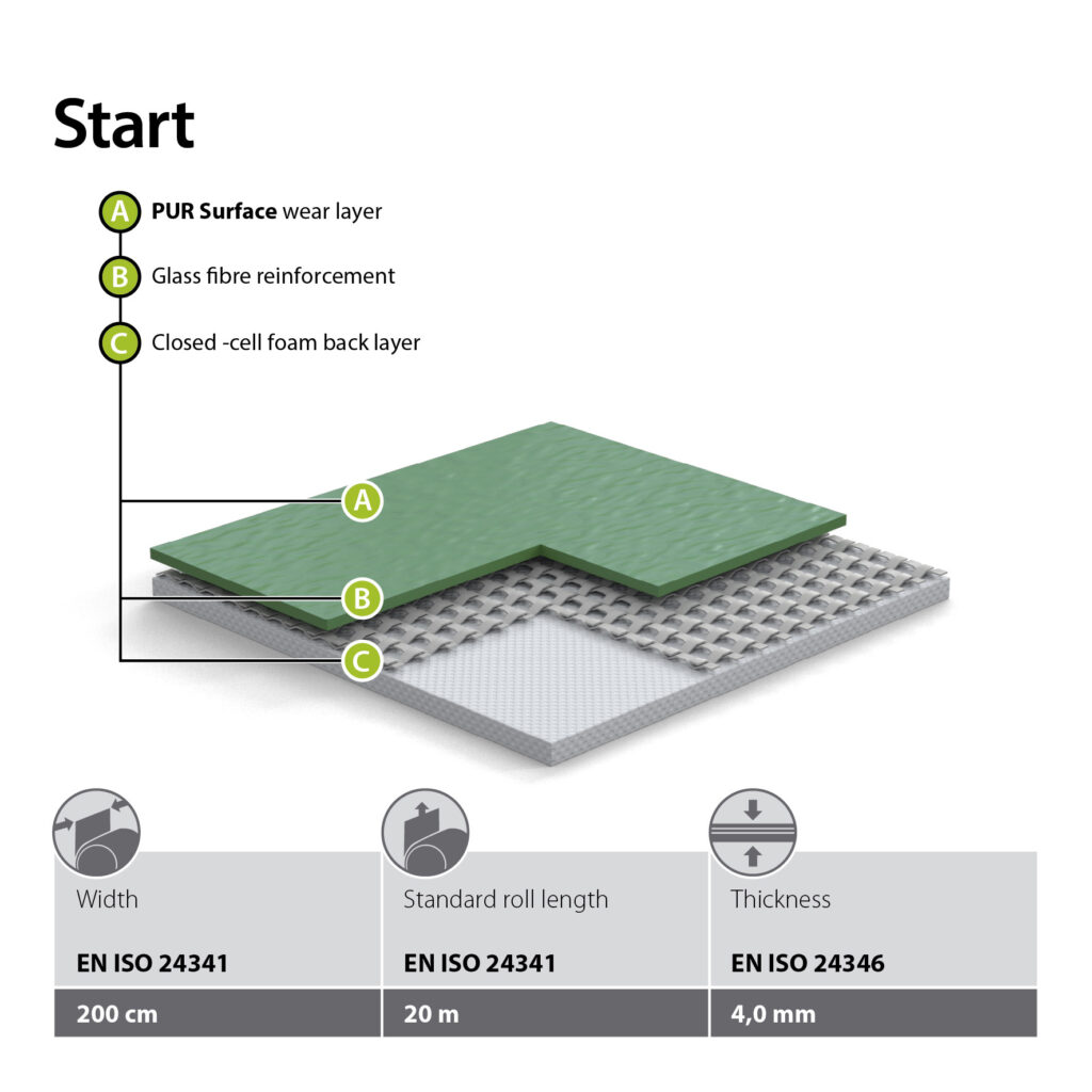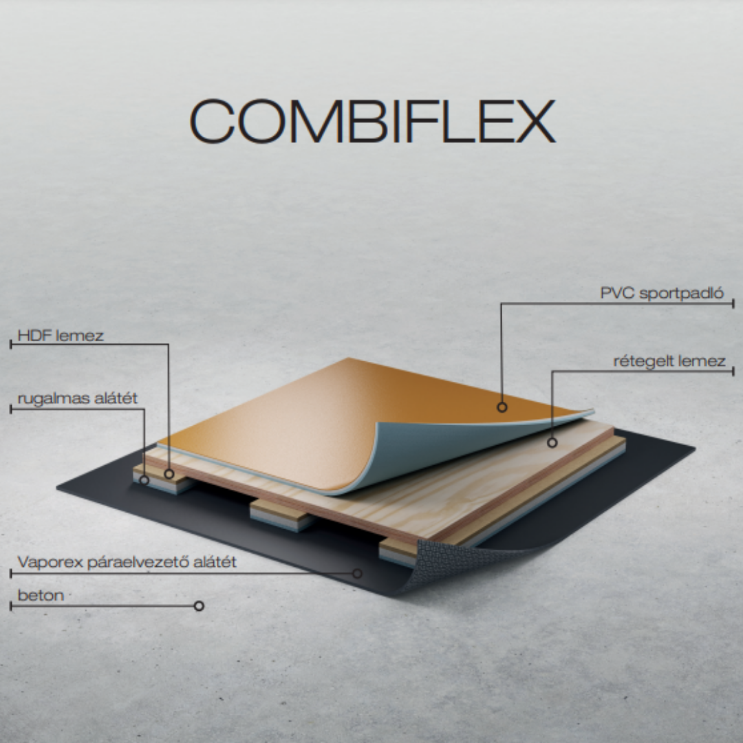 Un sistem de pardoseală sportivă cu proprietăți combi-elastice, format dintr-un strat suport amortizant și un înveliș superior din PVC. Stratul elastic punctual de la suprafață se activează chiar și la un impact ușor — de exemplu în cazul unei căzături sau atunci când suprafața este folosită de copii — oferind protecție sportivului. Sistemul inferior de amortizare intervine la lovituri mai puternice, protejând cartilajele și articulațiile utilizatorilor. Acest tip de pardoseală este recomandat în special pentru sălile de sport care găzduiesc activități atât pentru copii, cât și pentru adulți. Totuși, este la fel de potrivită atât pentru nevoile celor mai tineri sportivi, cât și pentru sportul de performanță la nivel înalt.