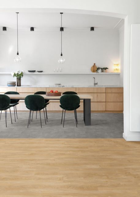 Pardoseală LVT Cantera 46930, cu aspect de piatră albastră belgiană, rezistentă și compatibilă cu încălzirea în pardoseală. Elegantă și versatilă.