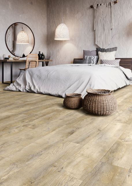 O pardoseală din stejar cu un aspect rustic, dar contemporan, cu nuanțe delicate și texturi sculptate, perfectă pentru un cămin primitor.